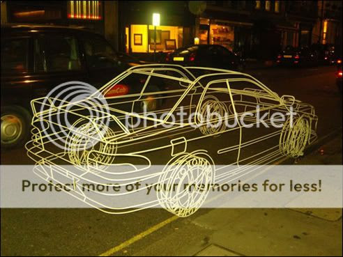kelihatan seperti vector grapic dengan sentuhan sotosop, tapi ini merupakan karya Benedict Radcliffe,yang membuat rangka mobil dari kabel.